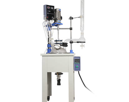 通过调节恒压漏斗或加料瓶上的调节阀控制物料均匀滴加。利用冷凝器的热交换功能蒸馏回收反应产物。双层调速玻璃反应釜的釜体具有内、外两层。通过向夹层内注入一定温度的循环液,调节釜内物料温度。三层调速玻璃反应釜有两层玻璃夹套。内层夹套用于通入一定温度的循环液,调节釜内物料温度。外层夹套用真空泵抽至真空状态,实现保温功能。