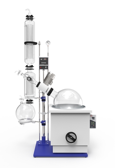 旋转蒸发器是由水浴加热系统、溶剂回收系统、真空系统(选配)组成。溶剂回收系统直立于底座之上,并可自由旋转,操作者可以方便的安装或者取下装置背面的样品。溶剂瓶置于水浴加热系统之中,可直接用于回收沸点为65℃的溶剂,配合真空系统后可用于回收沸点高达90℃的溶剂。