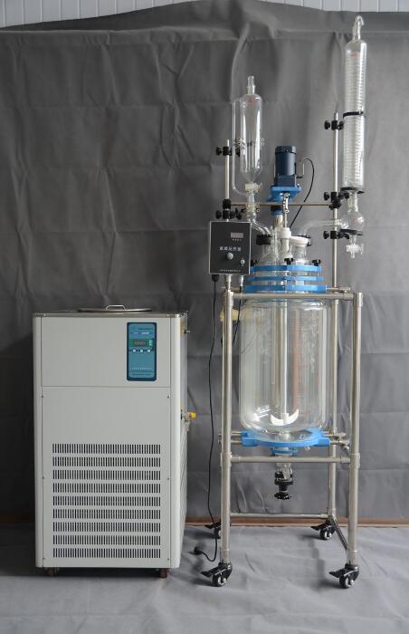 通过双层玻璃反应釜夹层注入恒温的(高温或低温)热溶媒体或冷却媒体,对反应釜内的物料进行恒温加热或制冷。
