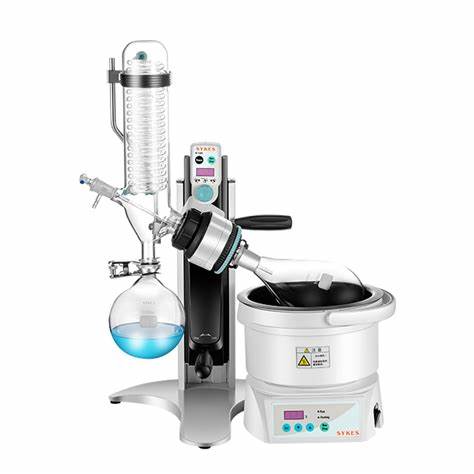 其核心部件是一个带有蒸发瓶的旋转轴,蒸发瓶内装有待蒸发的溶液。旋转的作用是使溶液形成一层薄膜均匀地附着在蒸发瓶的内壁上,这样可以增加液体与蒸发瓶壁之间的接触面积,从而加速溶剂的蒸发。